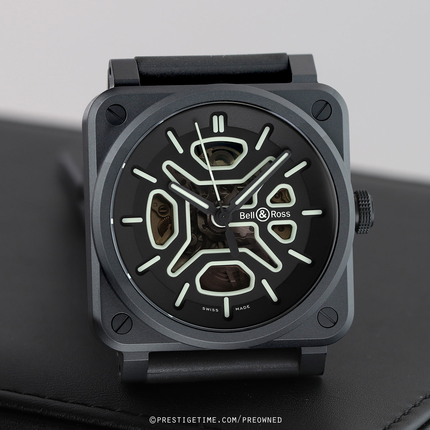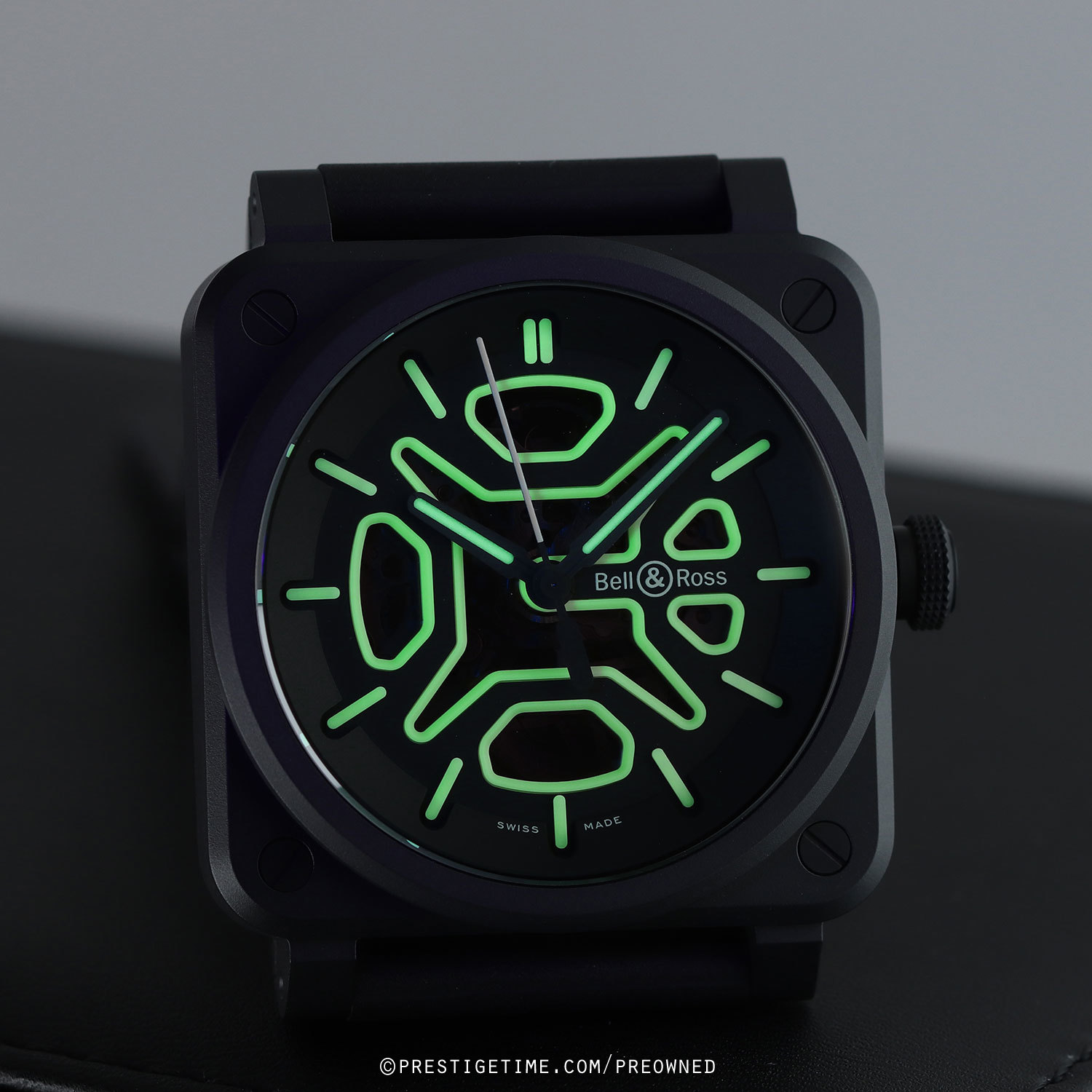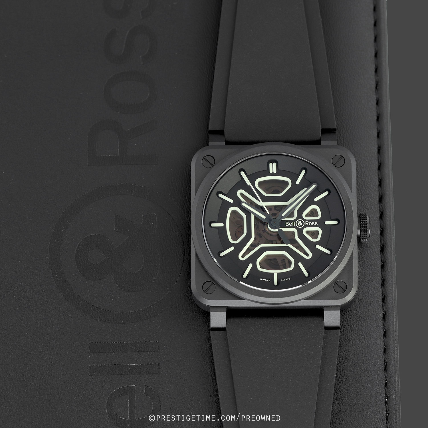 1. Fitted on its original Bell & Ross black rubber strap with a stainless steel tang buckle. This strap is unworn in new condition with its full wear lifespan remaining.