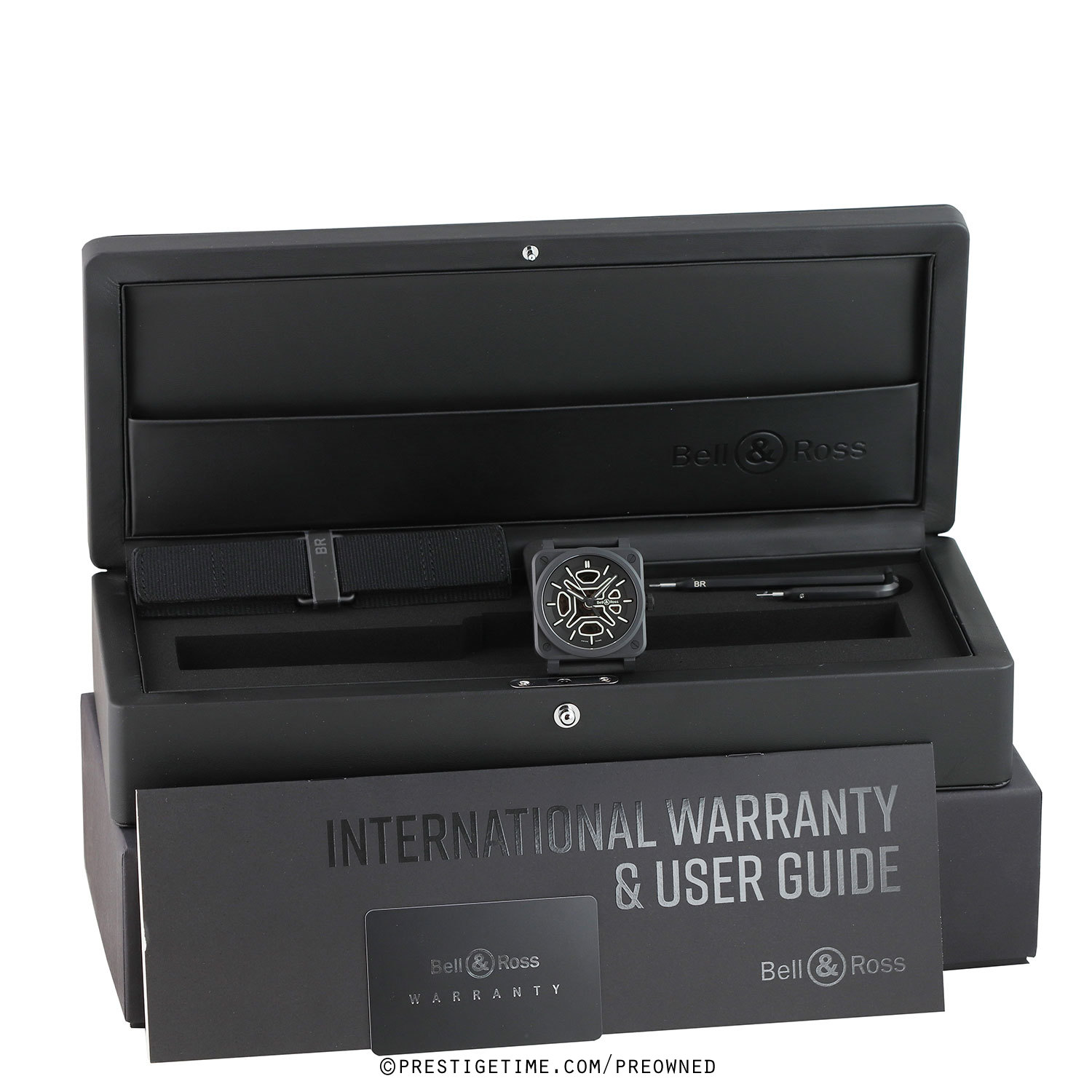 2. Delivered with an additional Bell & Ross original black fabric Velcro strap. This strap is unworn in new condition with its full wear lifespan remaining.