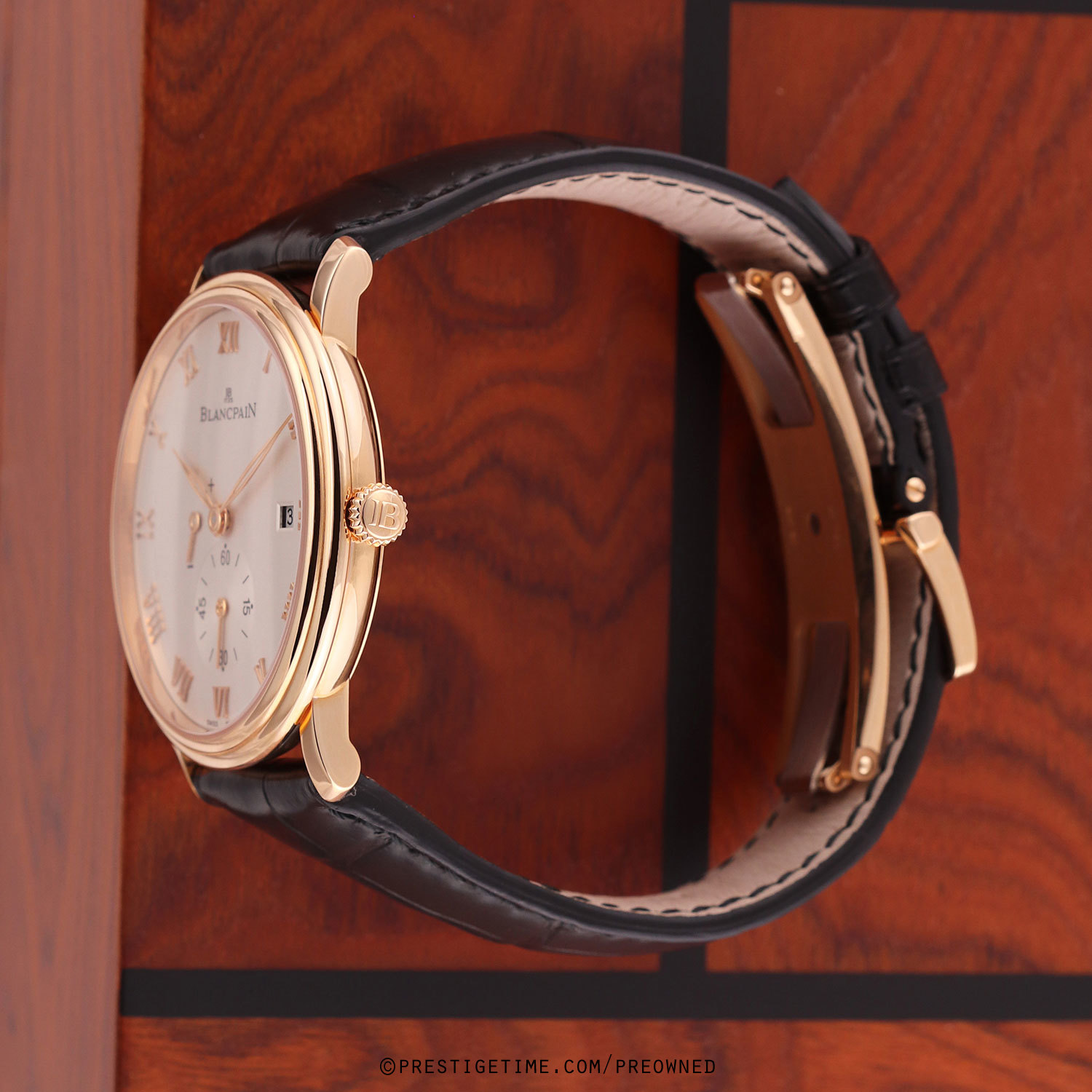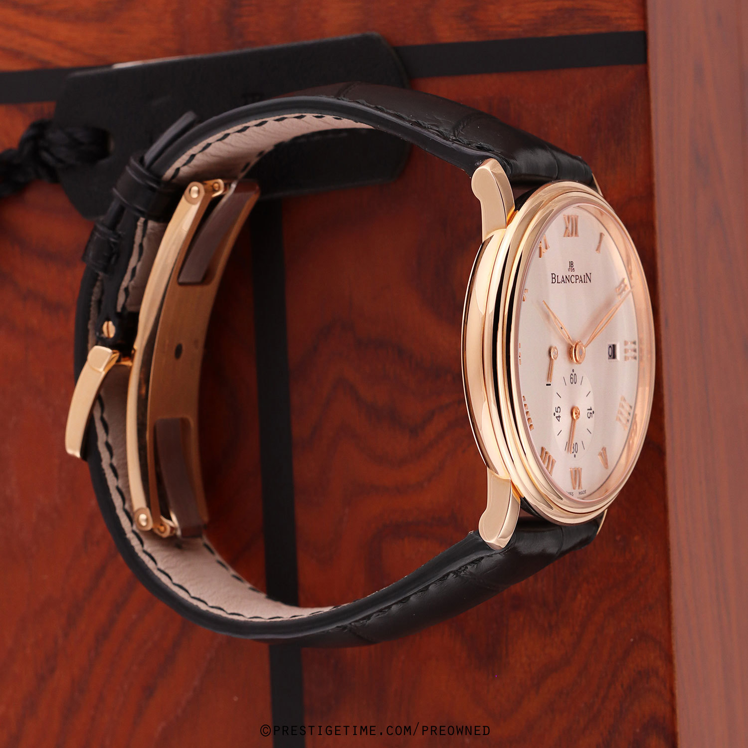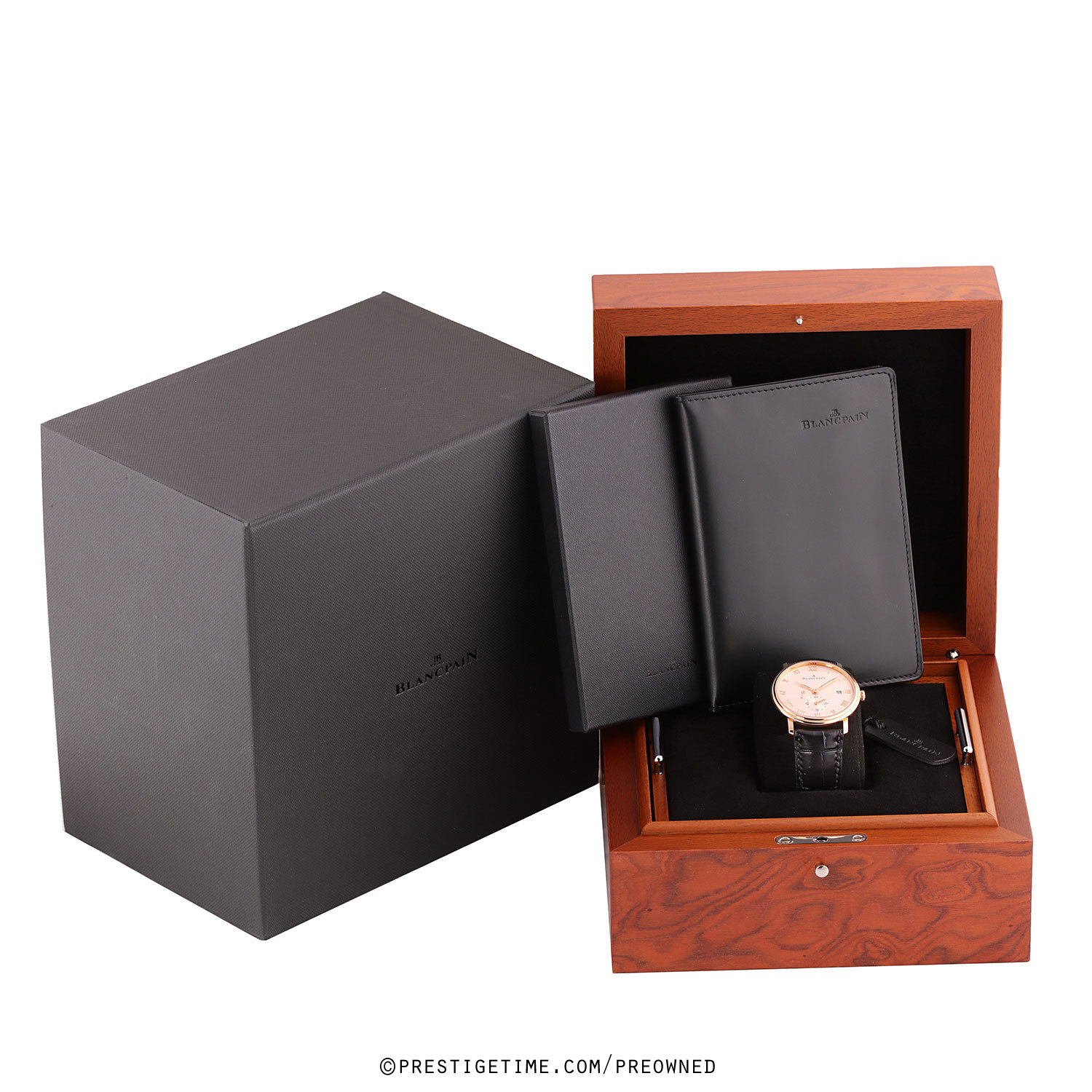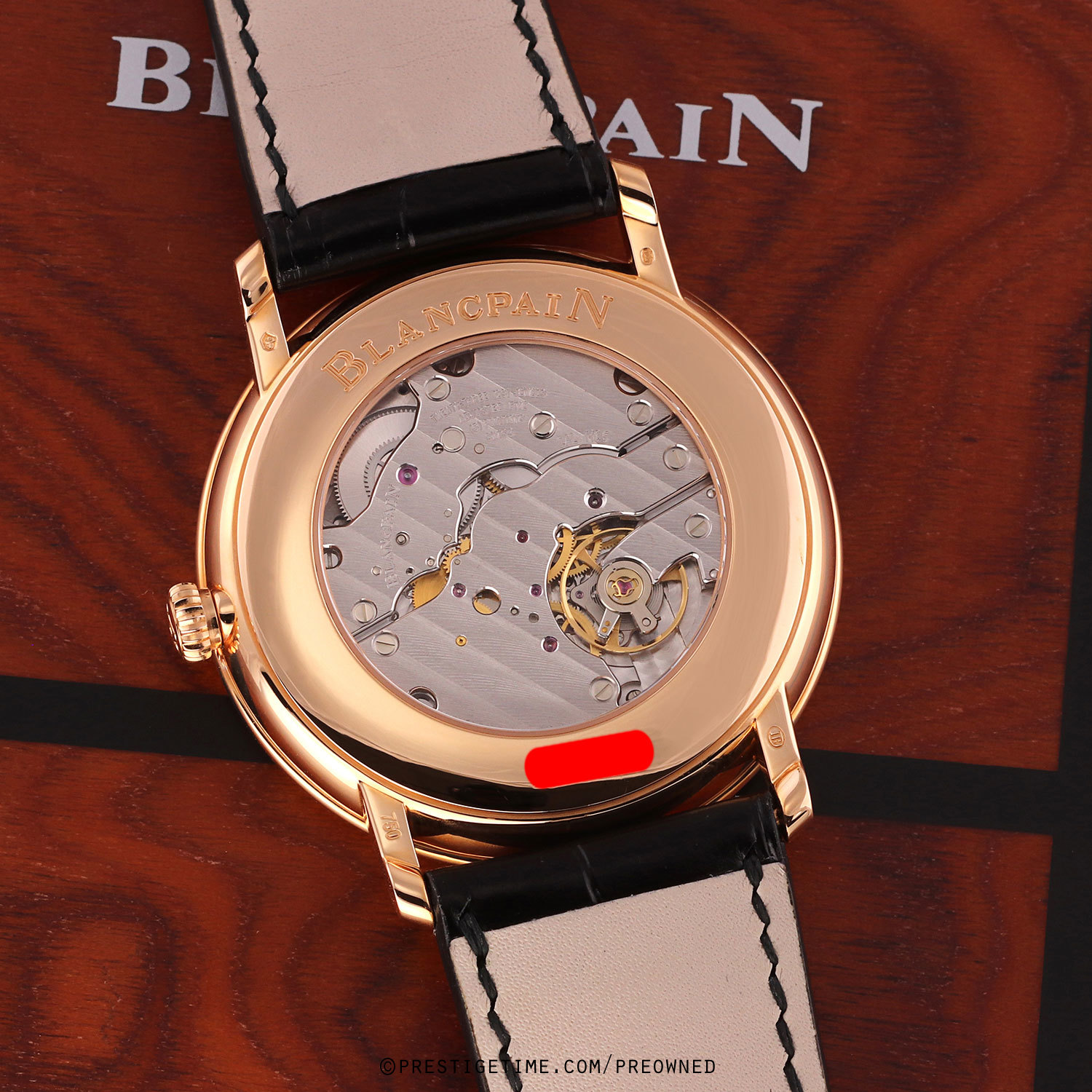 Strap: Fitted on a Blancpain original black alligator leather strap with an 18kt rose gold deployant buckle. The strap is lightly worn with the plenty of its wear lifespan remaining. We would grade the strap as in 92% overall condition.