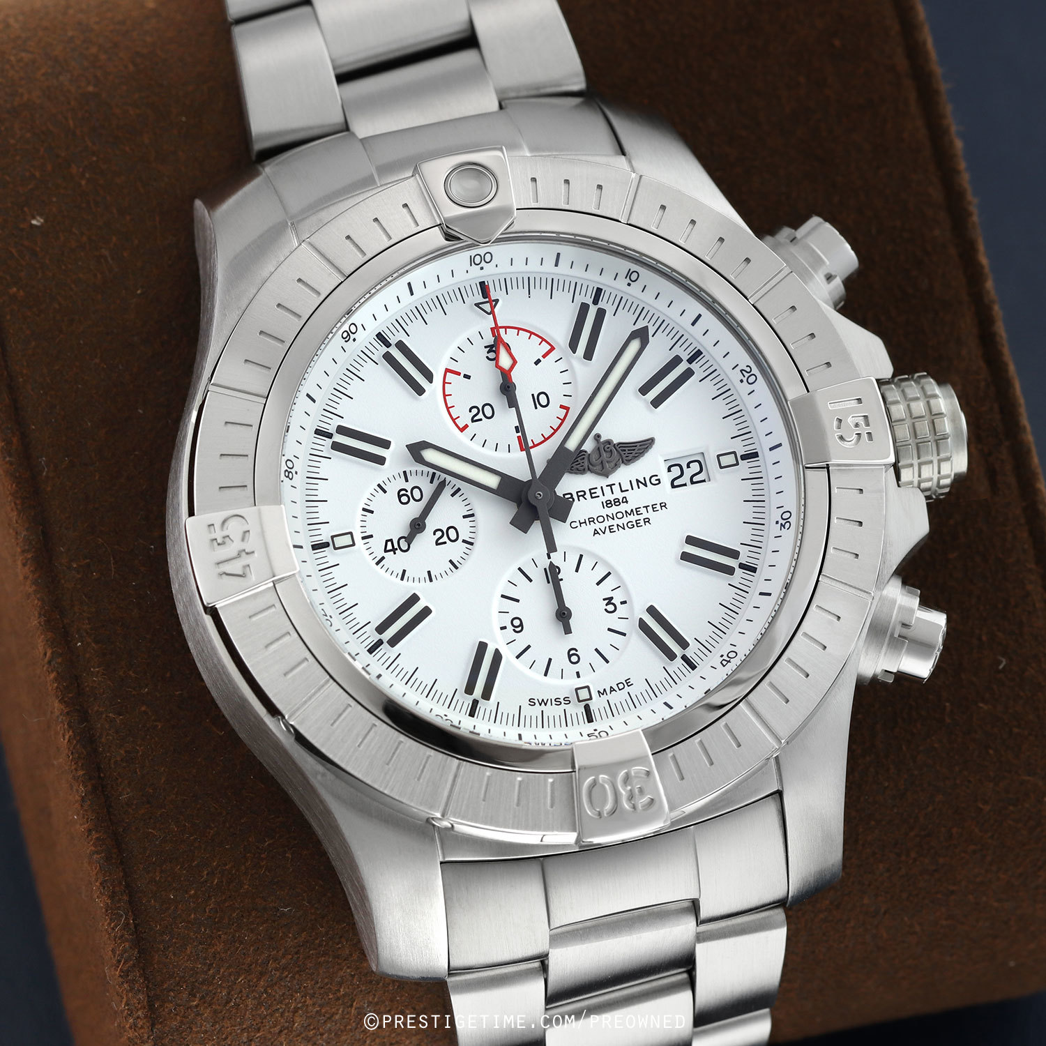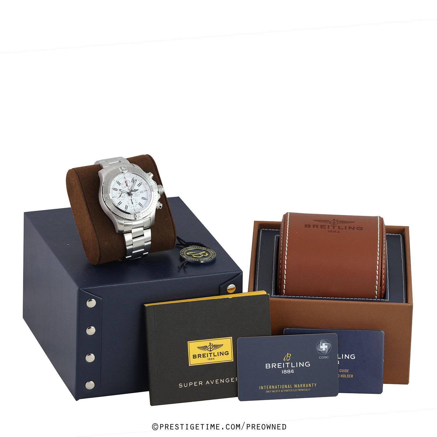 Movement: Powered by a Breitling COSC certified calibre 13 (base ETA/Valjoux 7750) which beats at 28,800 vph, contains 25 jewels, and has a power reserve of +/- 42 hours.