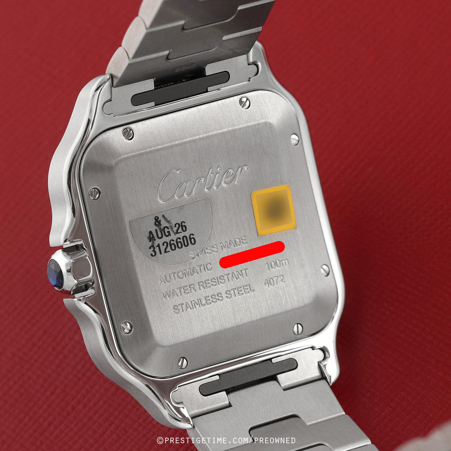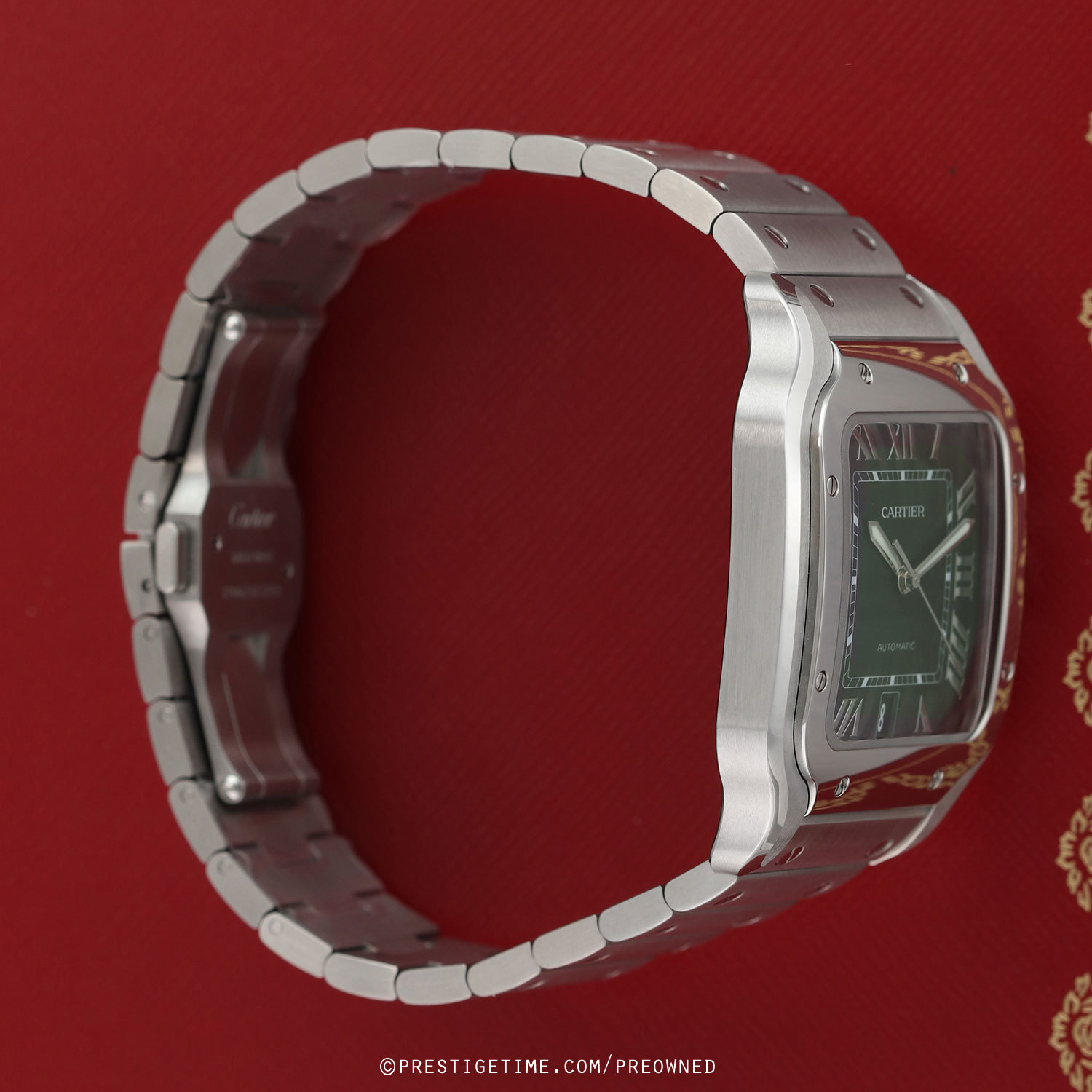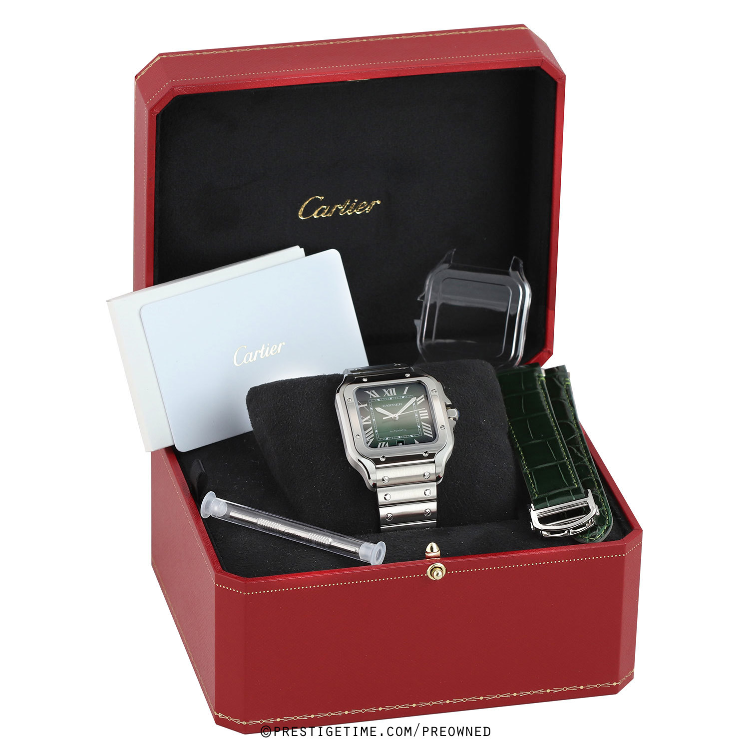 Bracelet & Strap: Delivered with 2 Cartier OEM bands, a stainless steel bracelet & an additional green alligator strap. The bands feature Cartier's QuickSwitch interchangeability system which allows for easy interchanging of the bracelet/strap without the need of tools.