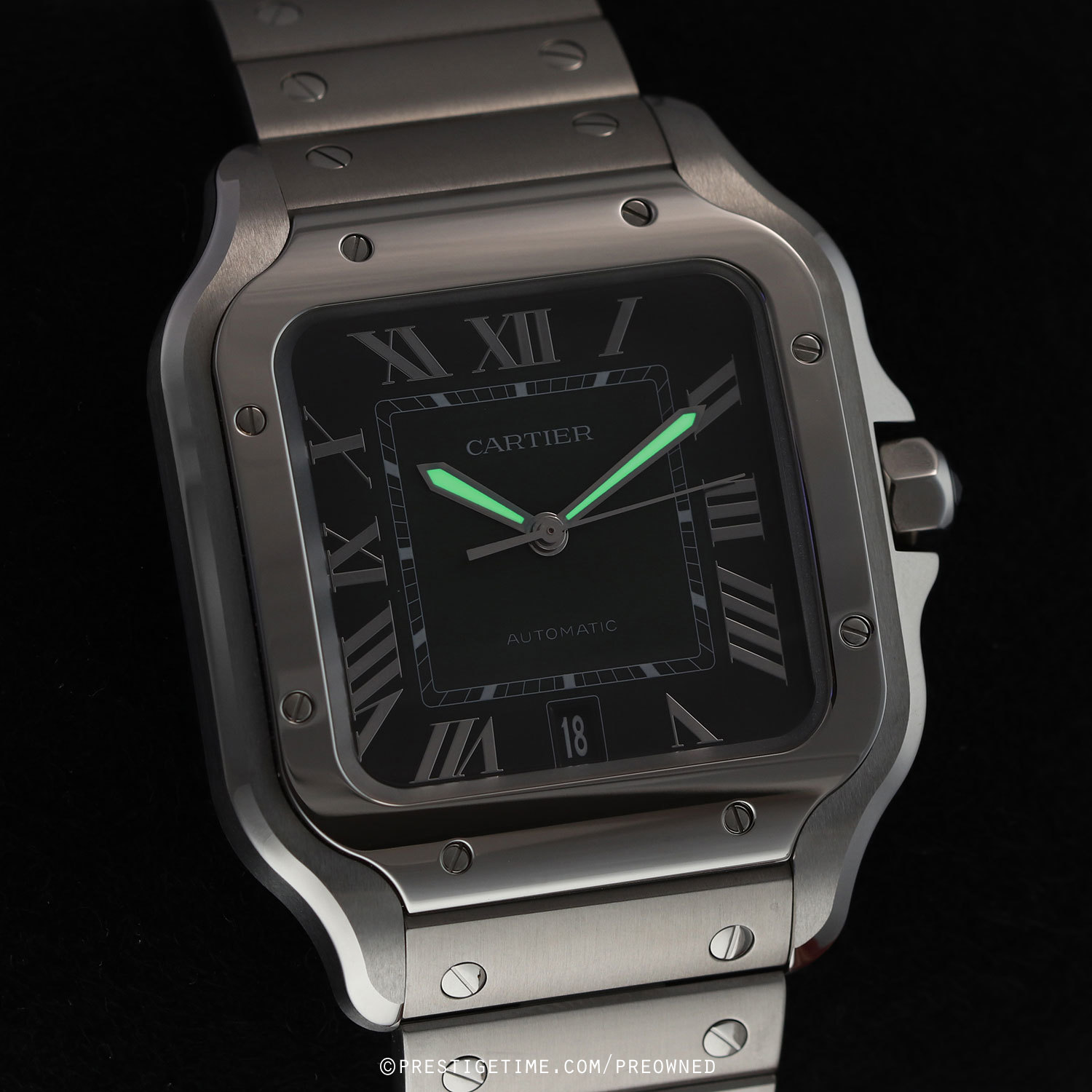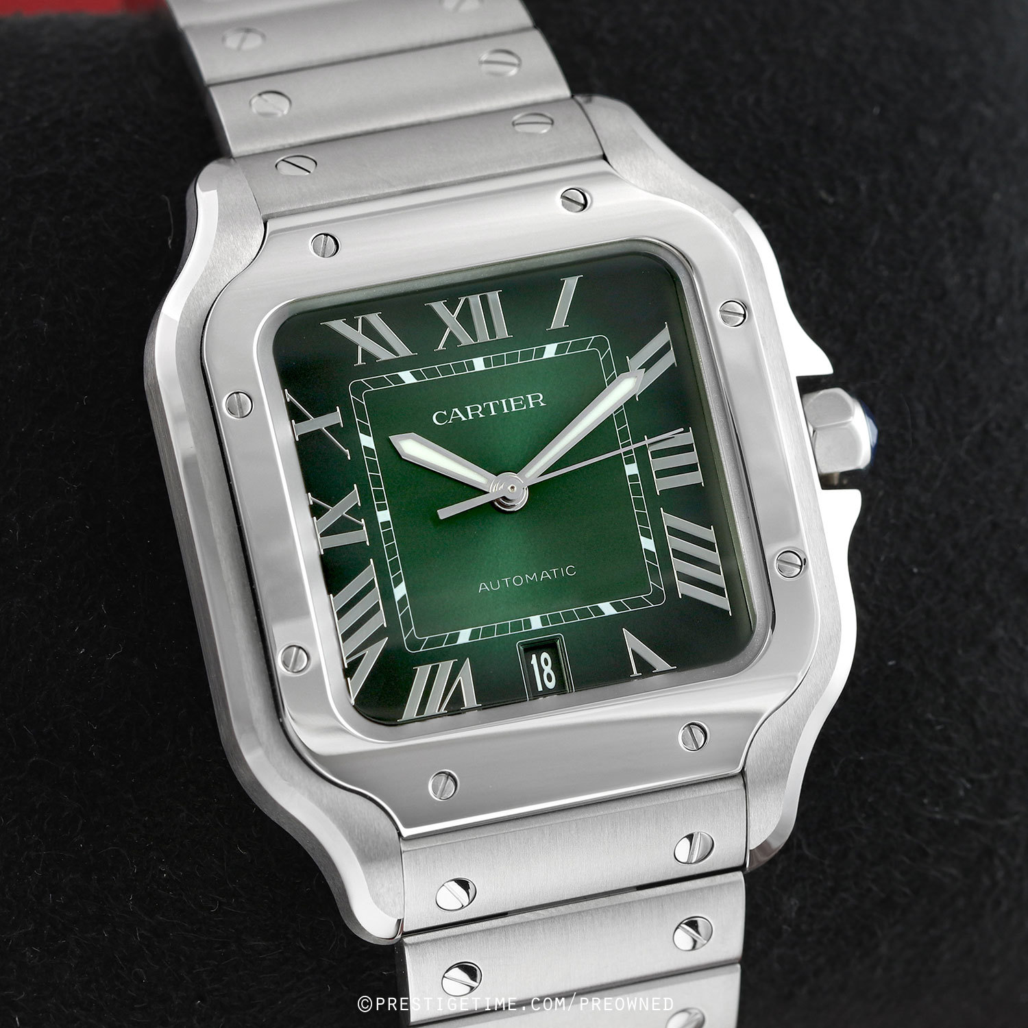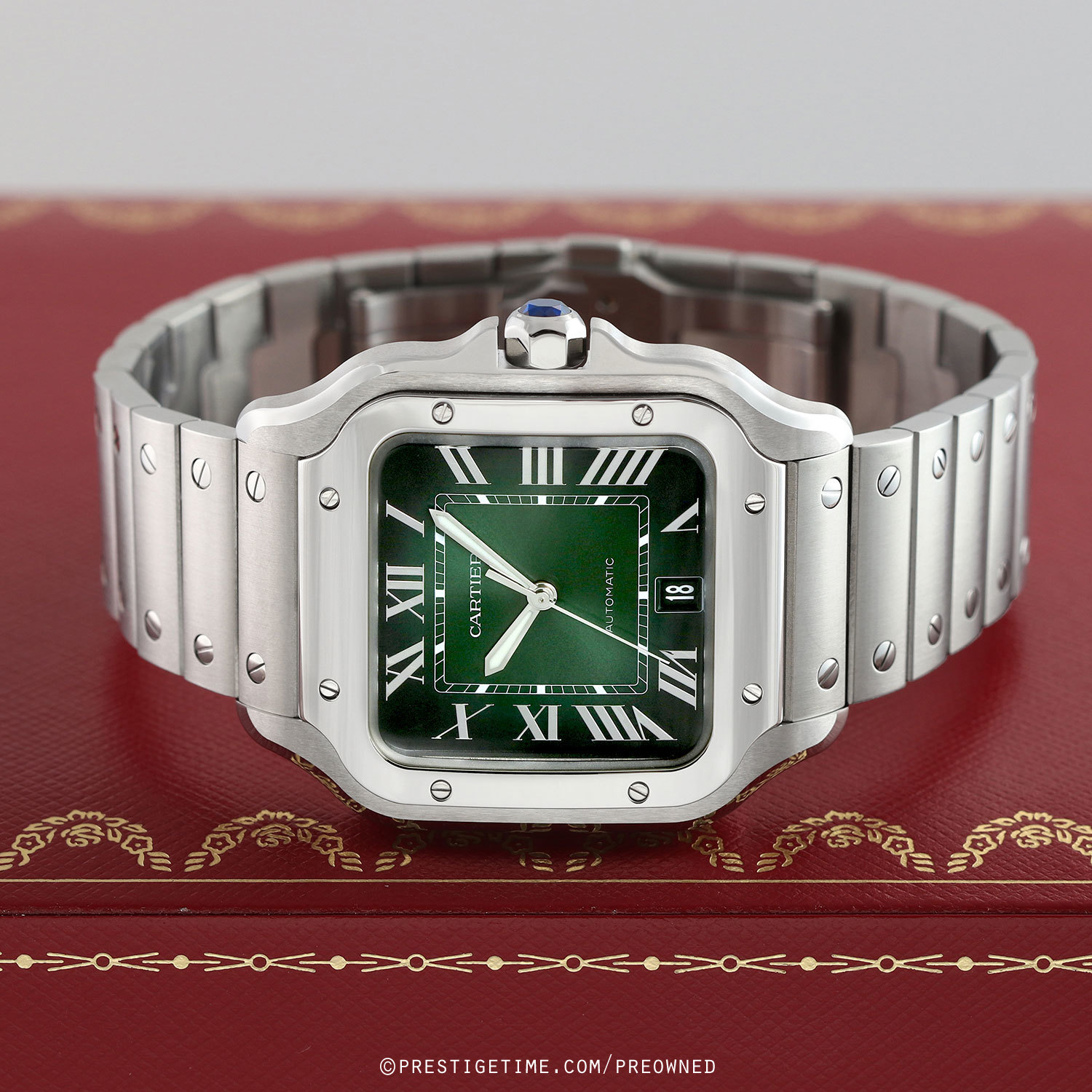 Bracelet & Strap: Delivered with 2 Cartier OEM bands, a stainless steel bracelet & an additional green alligator strap. The bands feature Cartier's QuickSwitch interchangeability system which allows for easy interchanging of the bracelet/strap without the need of tools.