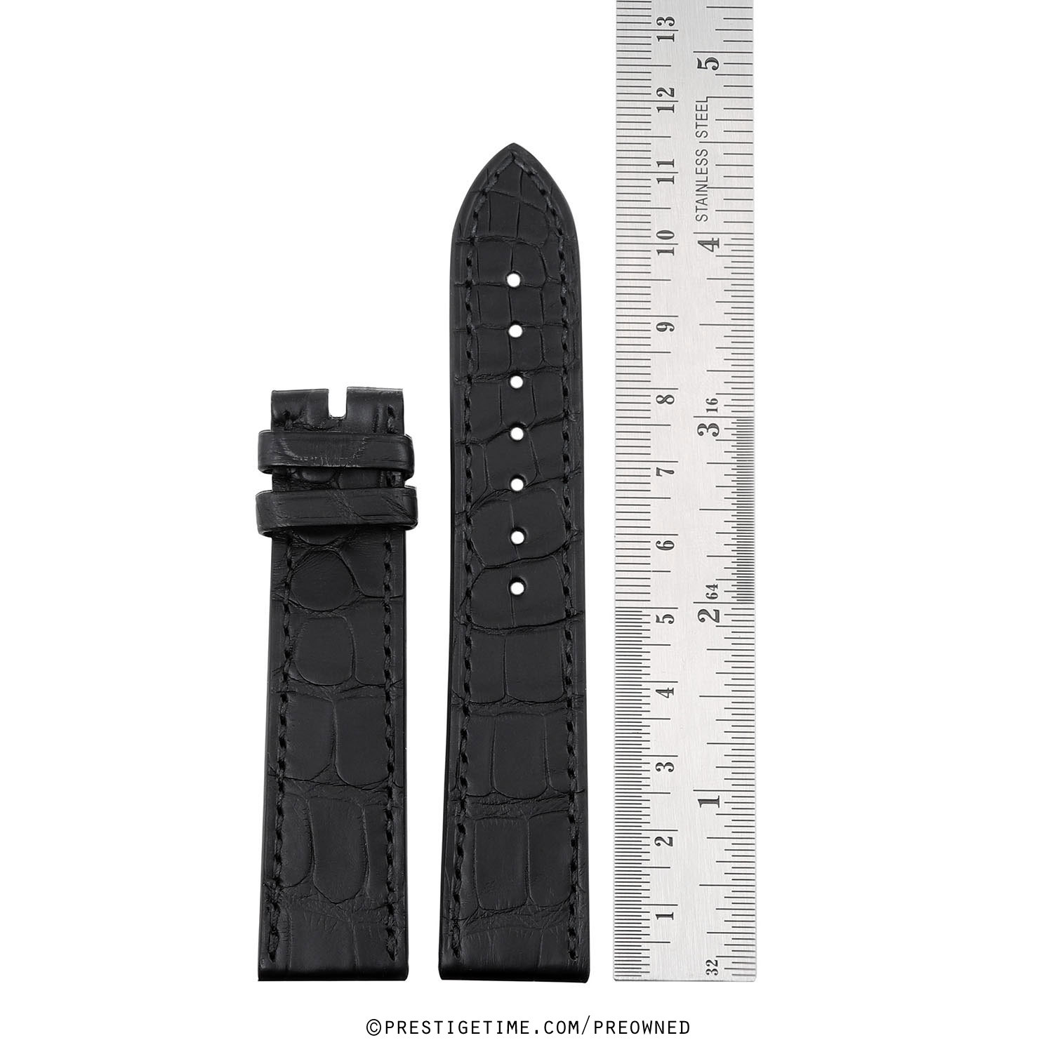 Genuine Chopard padded black matte alligator leather strap with brown alligator leather backing, painted black sides & black stitching.