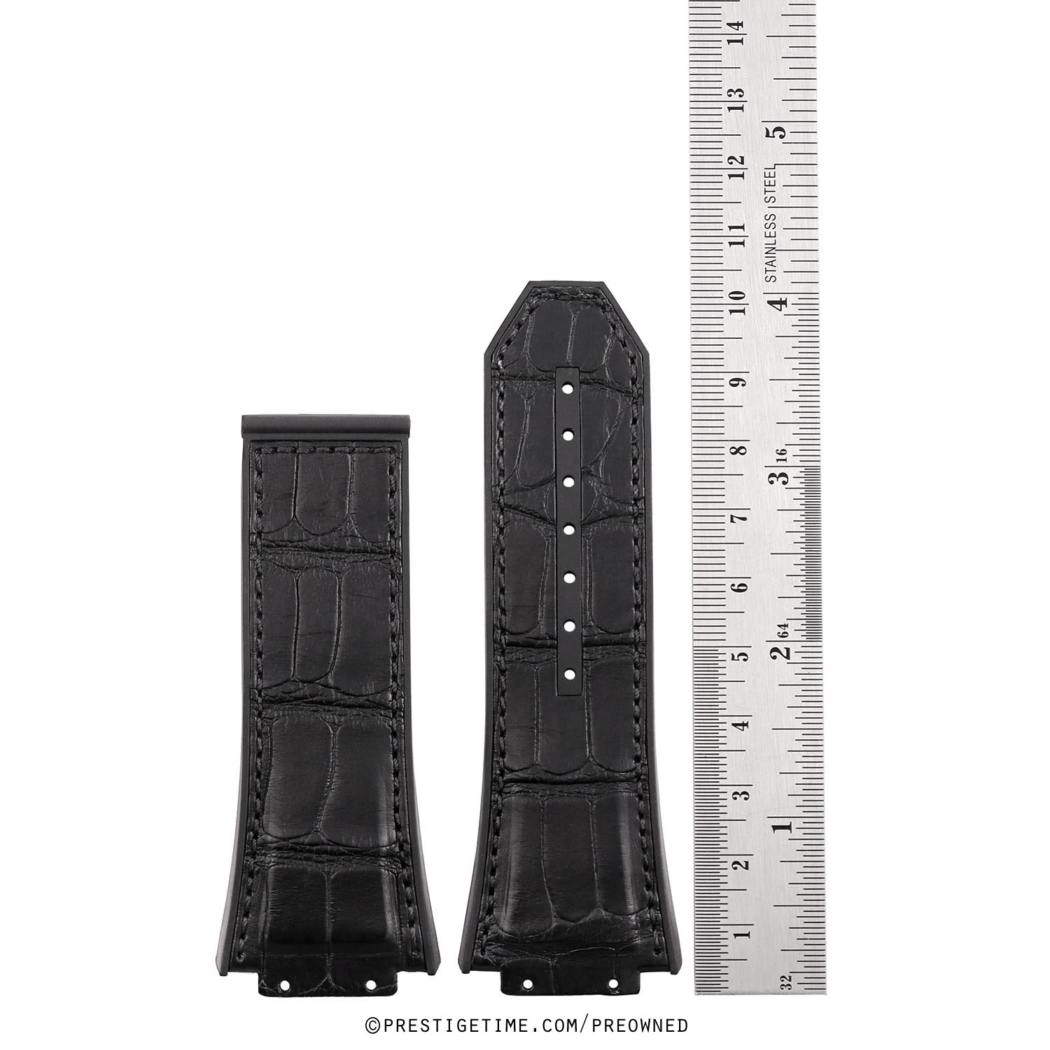 Genuine Hublot black alligator strap with black rubber lining &amp; sides.<br /> <ul> <li>&nbsp;Measures: <ul> <li>32mm at the lugs</li> <li>24mm at the buckle</li> <li>80mm long buckle side</li> <li>100mm long tail side</li> <li>Part #LR601.100.80</li> </ul> </li> <li>In brand new condition. unworn.</li> </ul>