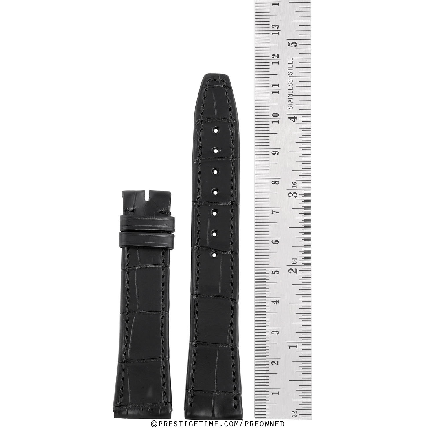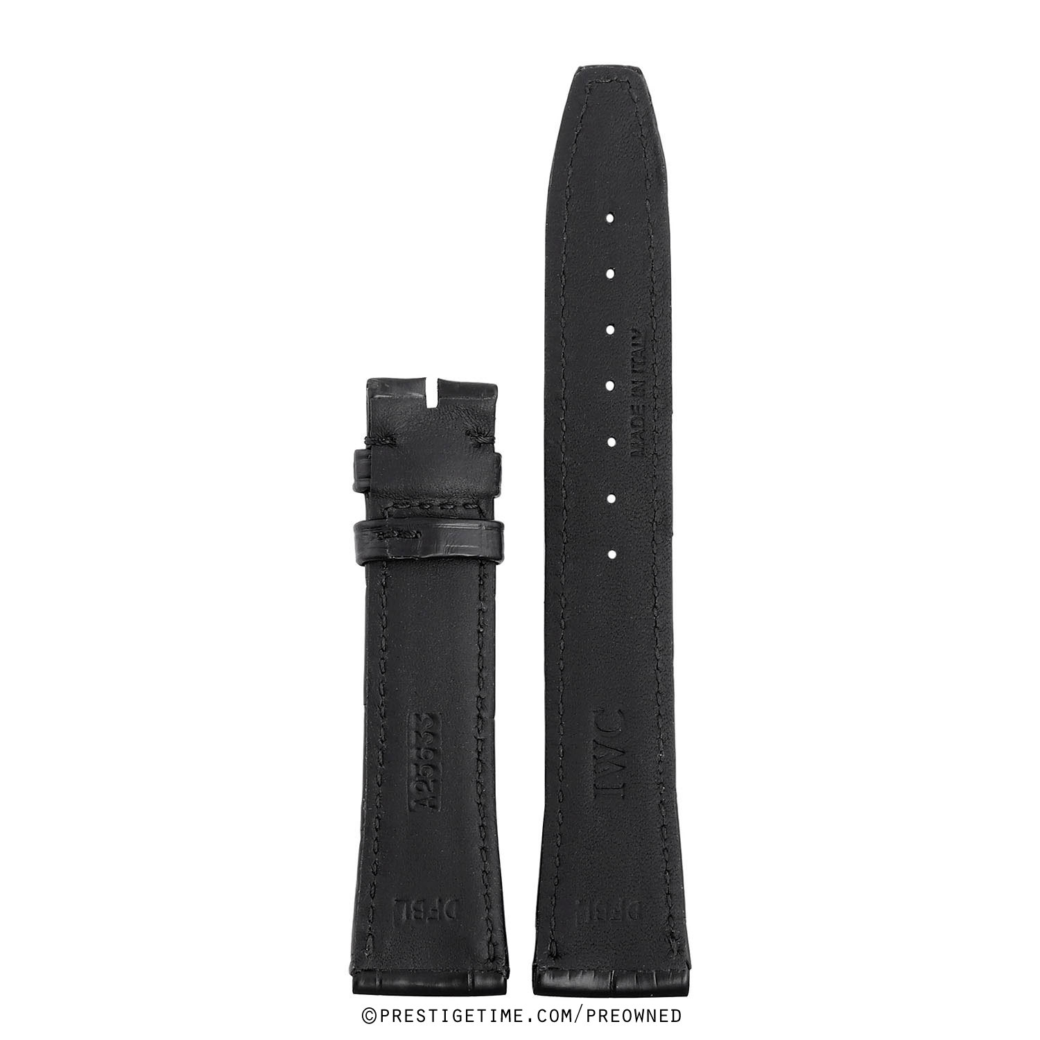 Genuine IWC black alligator stitched leather strap.
