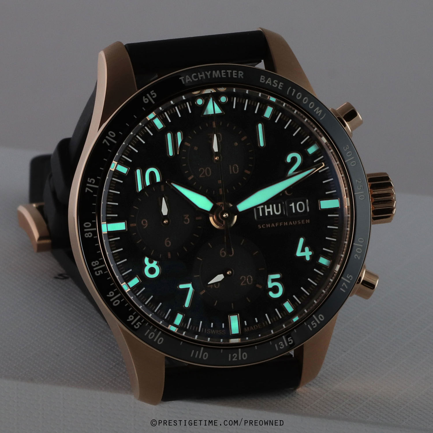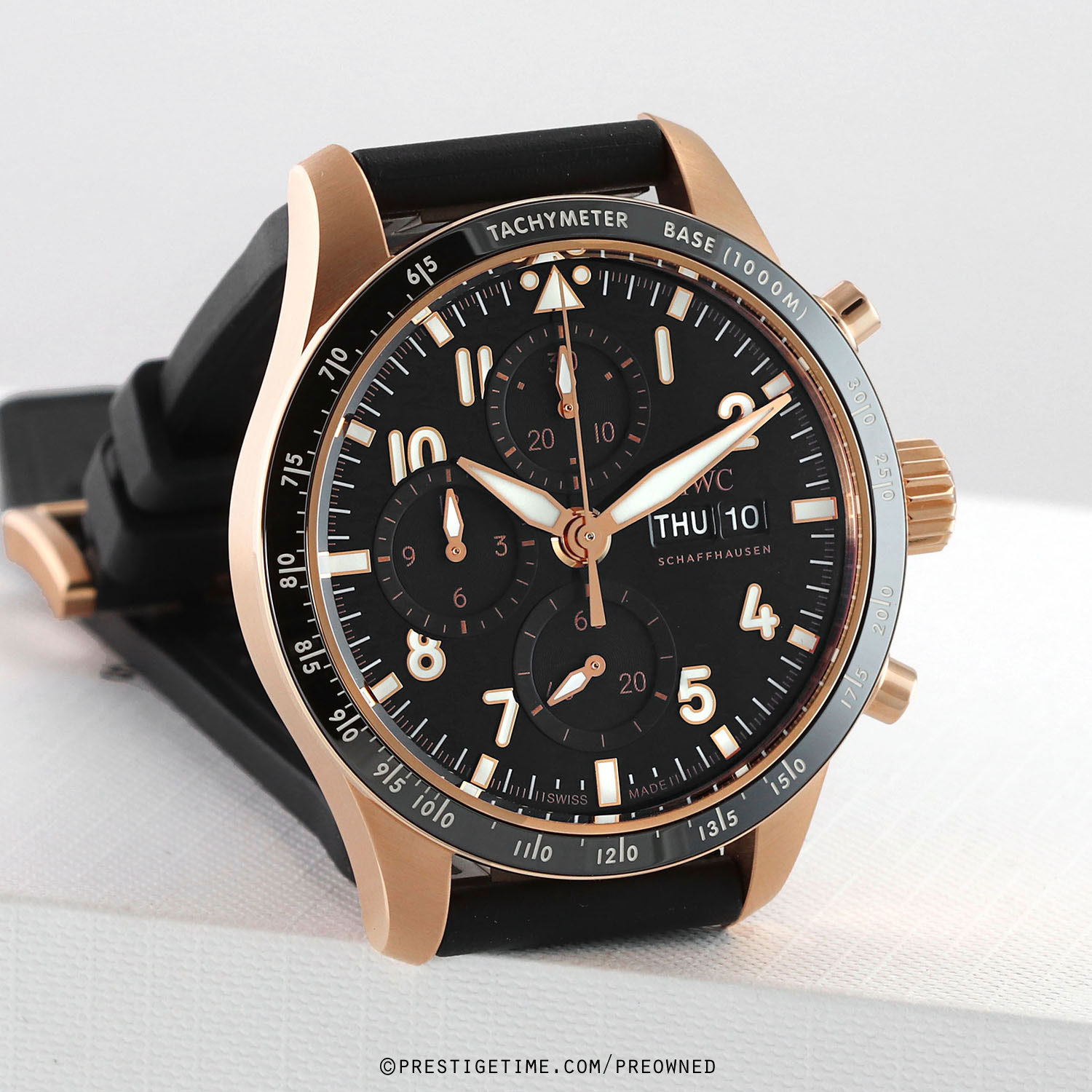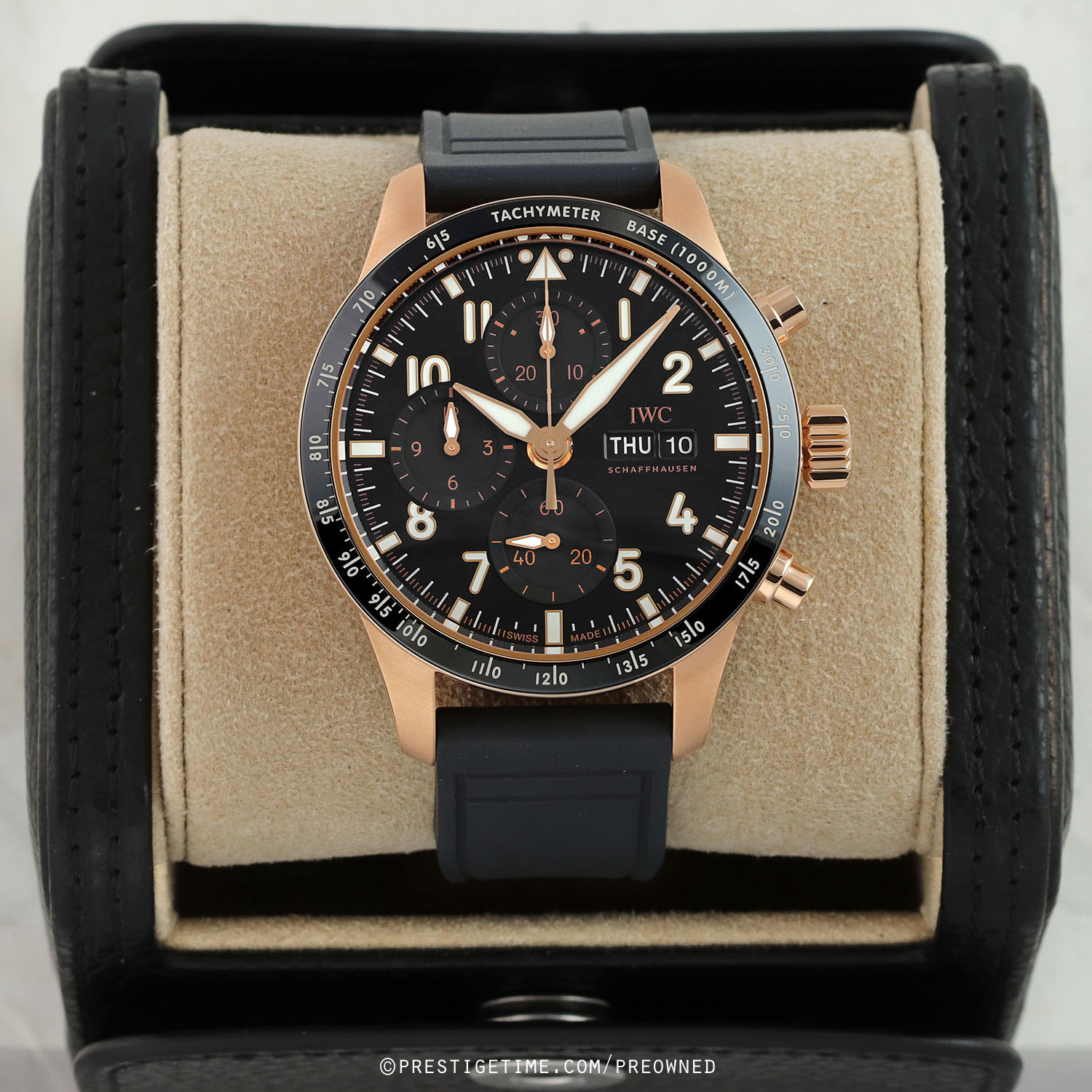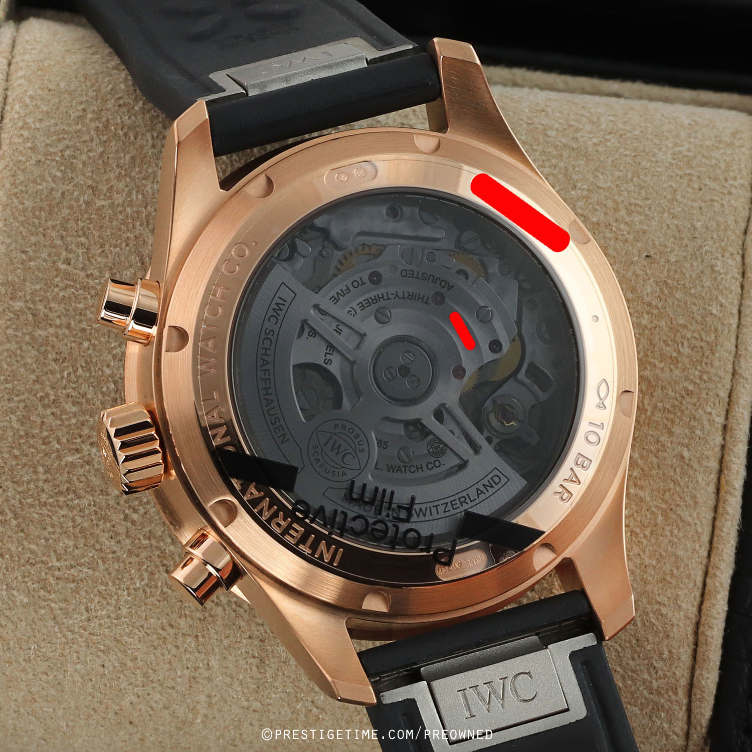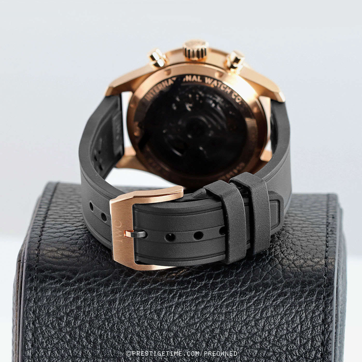 Strap: Fitted on its original IWC black rubber strap with a solid 18kt rose gold tang buckle. The strap is unworn, in near new condition with its full wear lifespan remaining. The straps features IWC's quick release EasX-CHANGE system allowing the change of straps without the need of tools.
