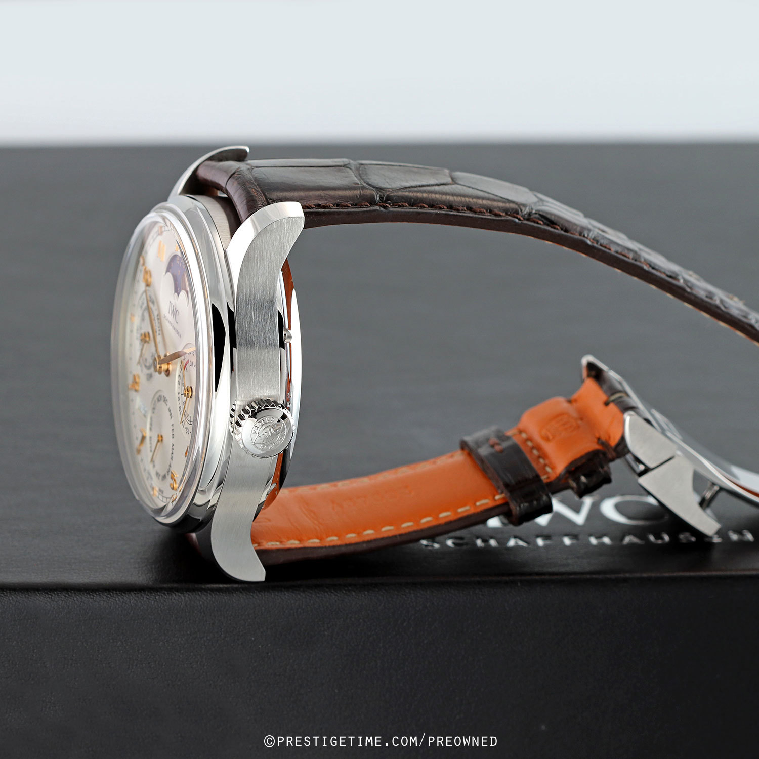Strap: Fitted on its original IWC by Santoni brown alligator leather strap with Santoni's signature orange calfskin leather lining & a stainless steel deployant buckle. The strap is in excellent near new condition with plenty of its wear lifespan remaining. We would grade this strap in 95%+ condition.