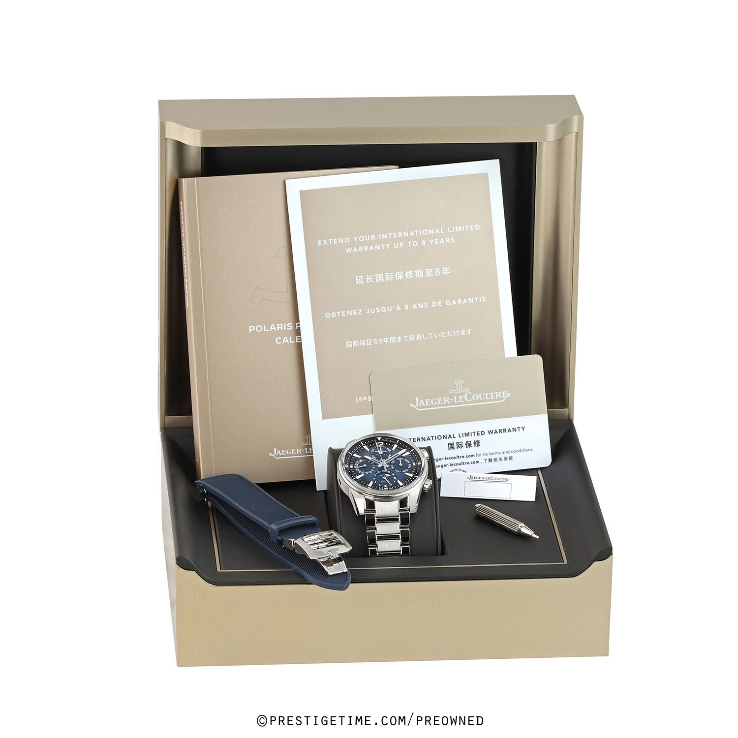 - Delivered with an addition JLC original blue rubber strap with a stainless steel deployant buckle. The strap is unworn, in new condition, with its full wear lifespan remaining.