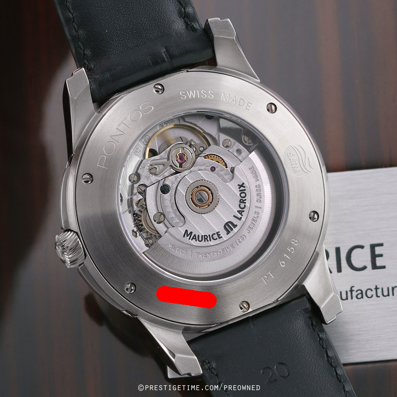 Movement: Powered by a Maurice Lacroix caliber ML009 (base ETA 2836-2), beats at 28,800 vph )4Hz), with 25 jewels, and has power reserve of +/- 38 hours.