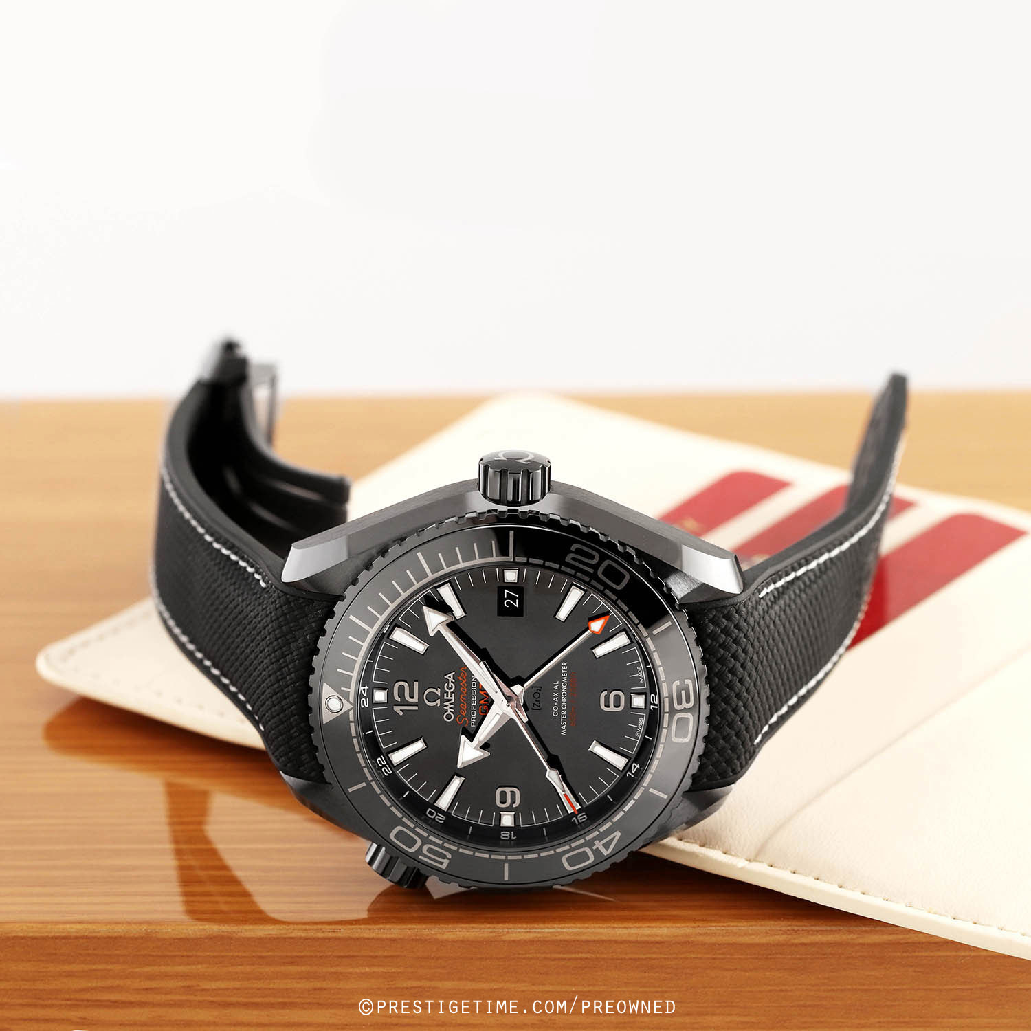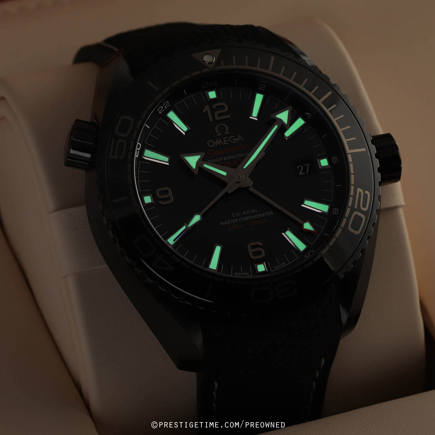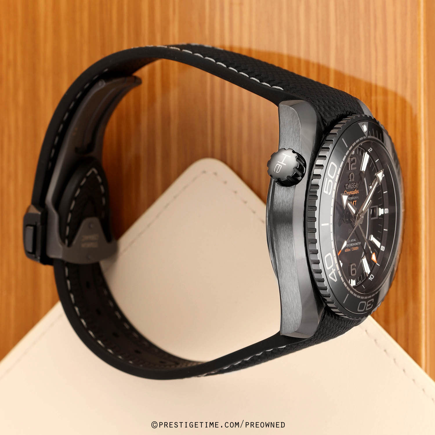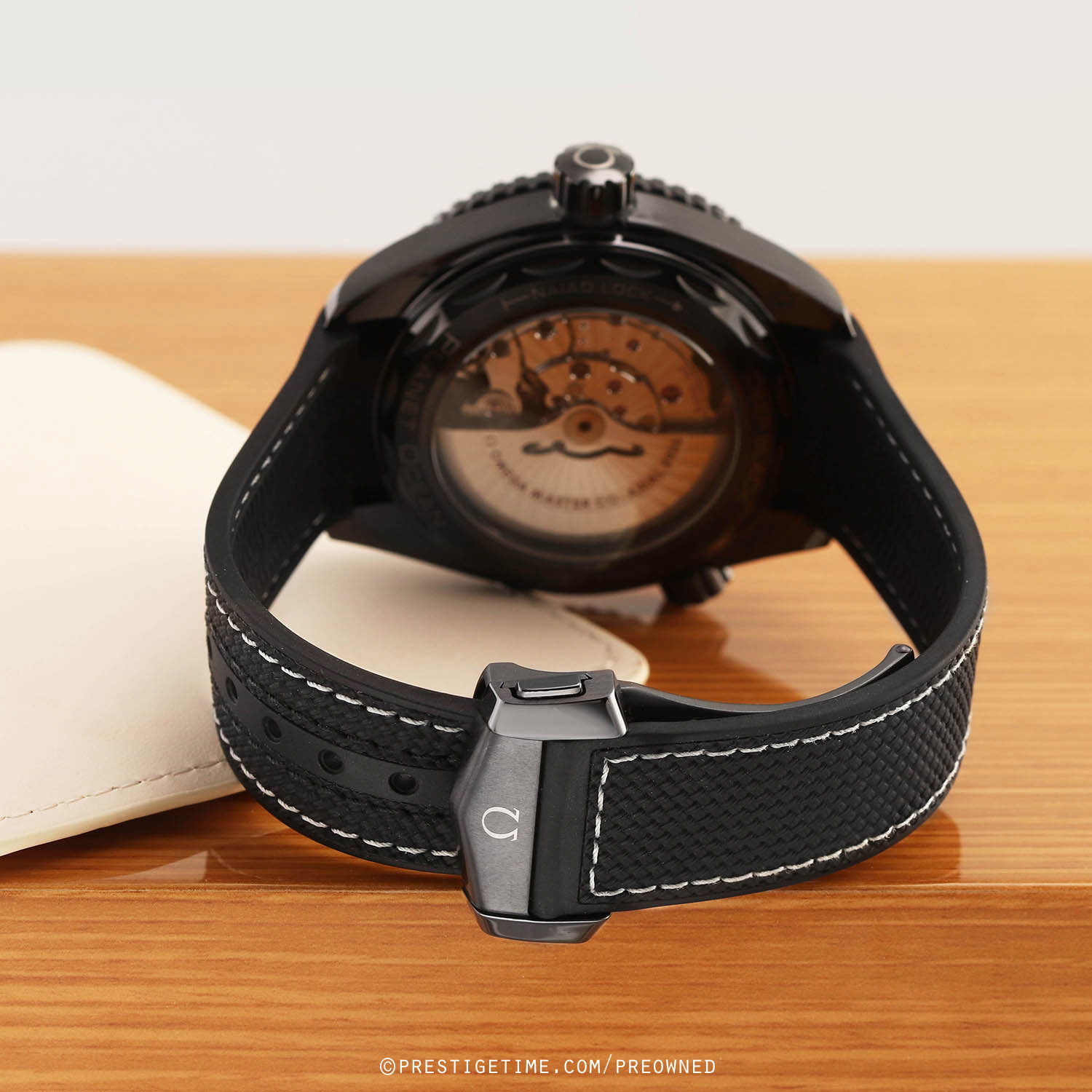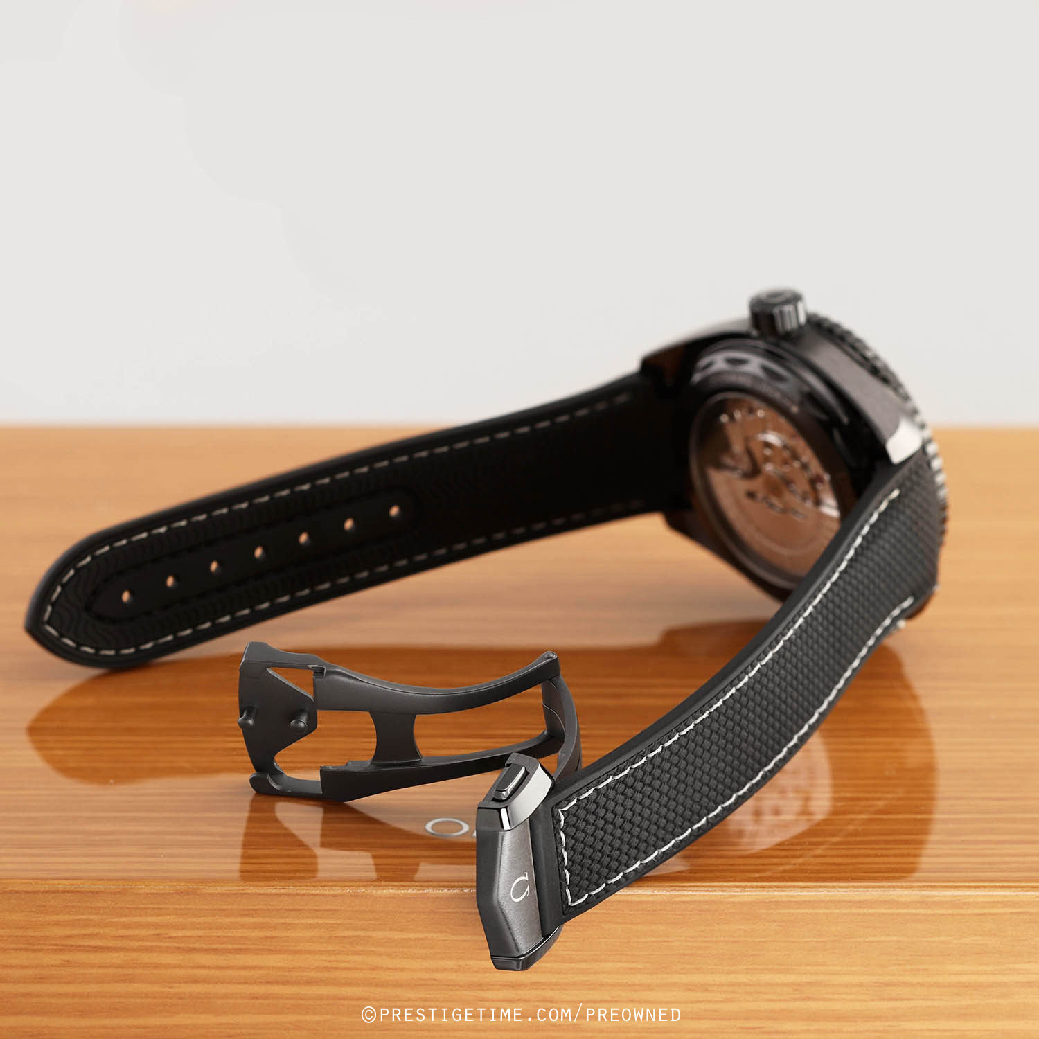 Strap: Fitted on its original black rubber with contrasting white stitching and with a black ceramic and titanium push button deployant buckle. The strap is in excellent near new condition, with the vast majority of its wear-lifespan remaining. We would grade the strap as in 97% condition.
