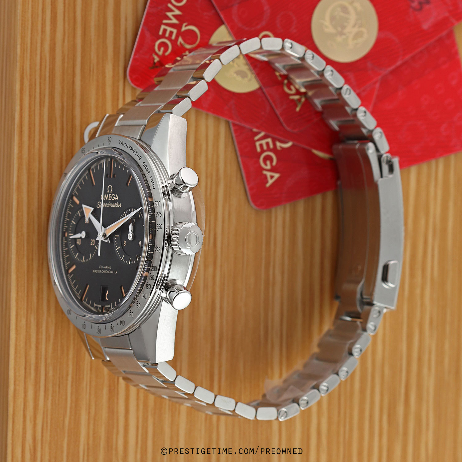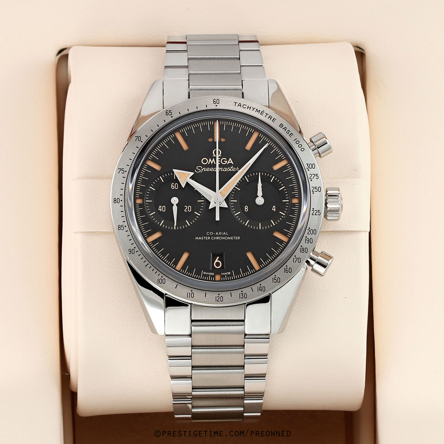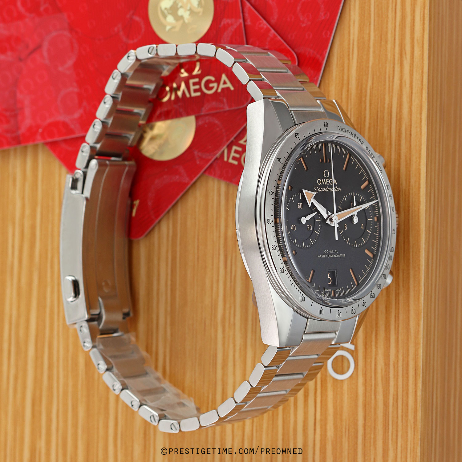 Movement: Powered by an Omega manual winding calibre Master Co-Axial 9906, beats at 28,800 vph (4Hz), contains 45 jewels & power reserve of +/- 60 hours. The movement is a Swiss Federal Institute of Metrology (METAS) certified Master-Chronometer. The METAS certification tests water resistance, precision and magnetic resistance to 15,000 gauss. Features Omega's Si14 silicon balance spring & Omega's Co-Axial Escapement. The back-plate is rhodium plated & decorated with Geneva waves in arabesque design.