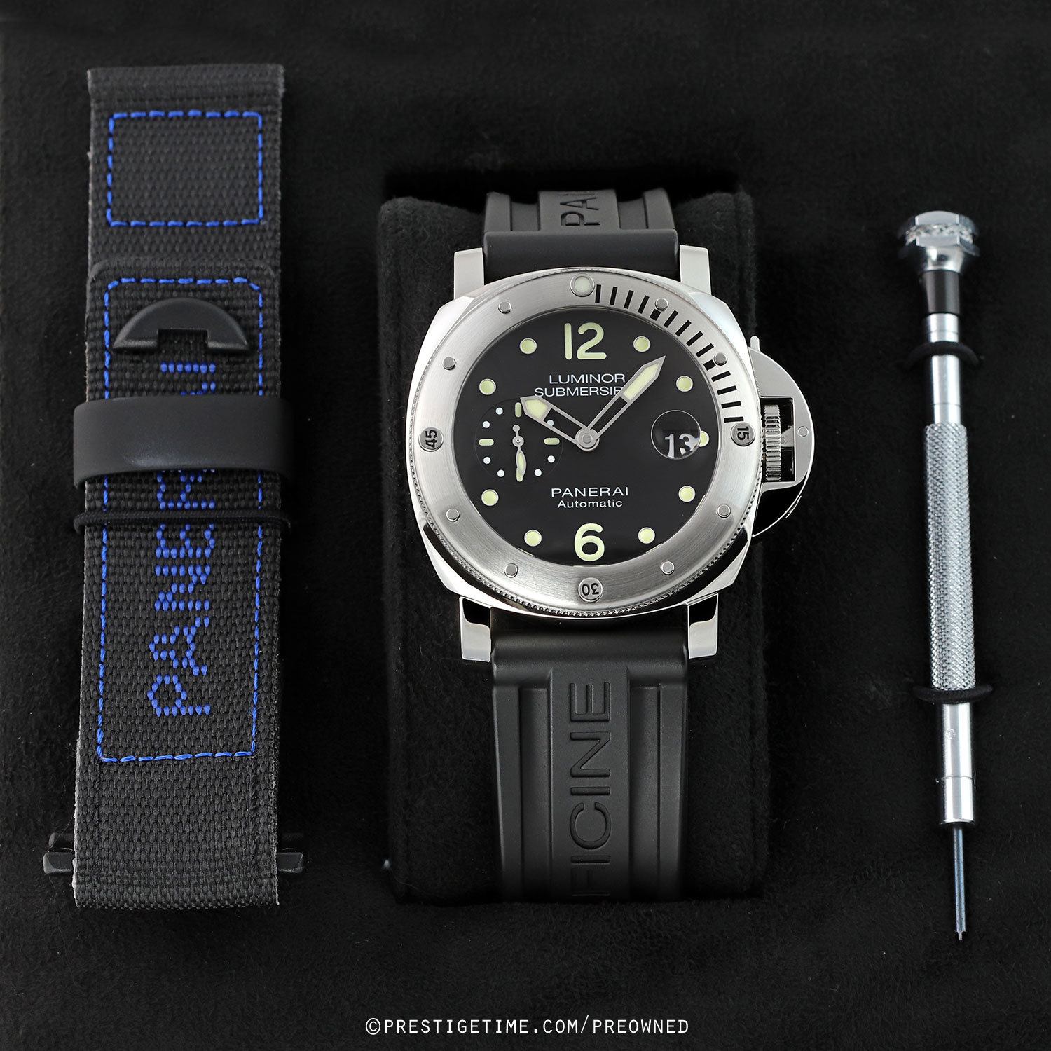 - Included is an additional Panerai original black nylon Velcro strap. This strap is in excellent condition with plenty wear-lifespan remaining. We would grade the strap in 93% condition.