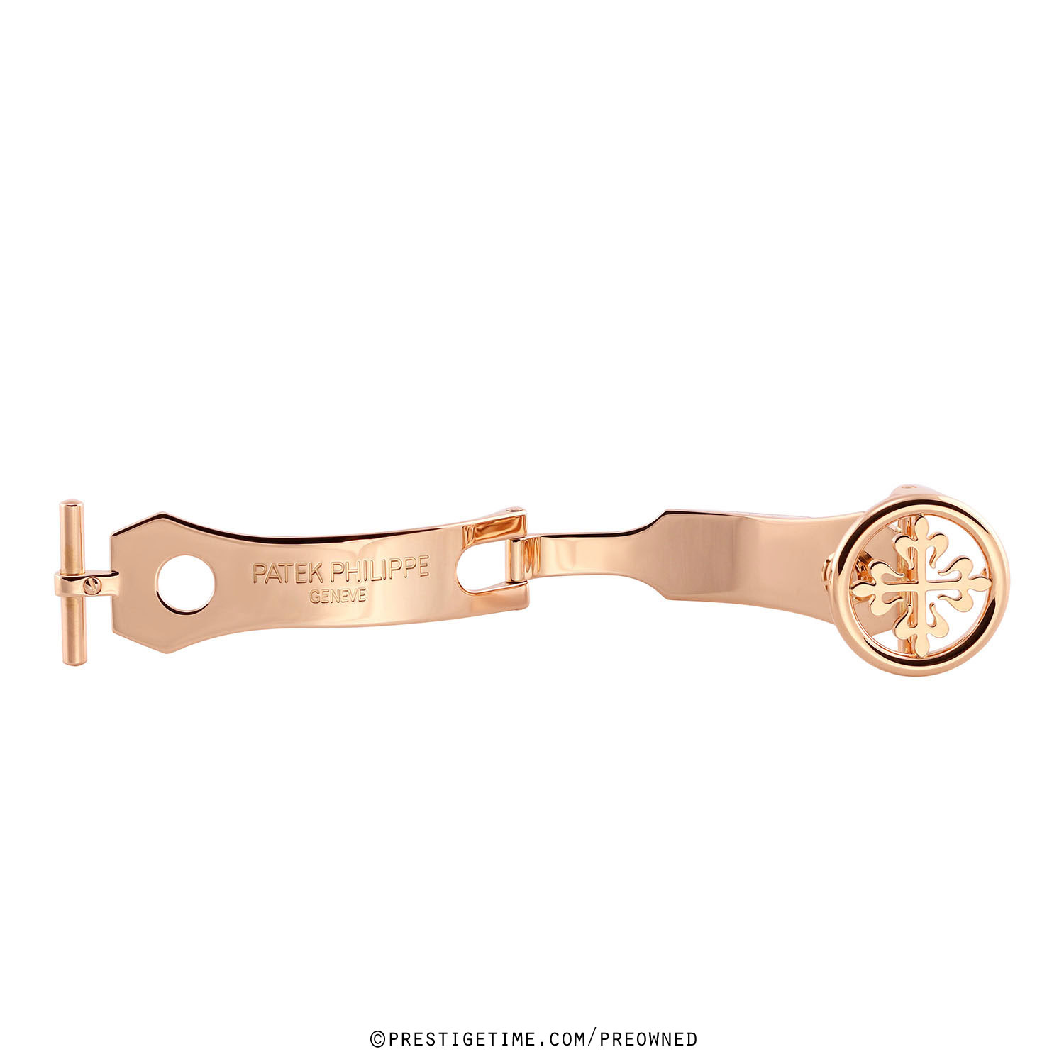 • Genuine Patek Philippe 18kt rose gold deployant buckle.