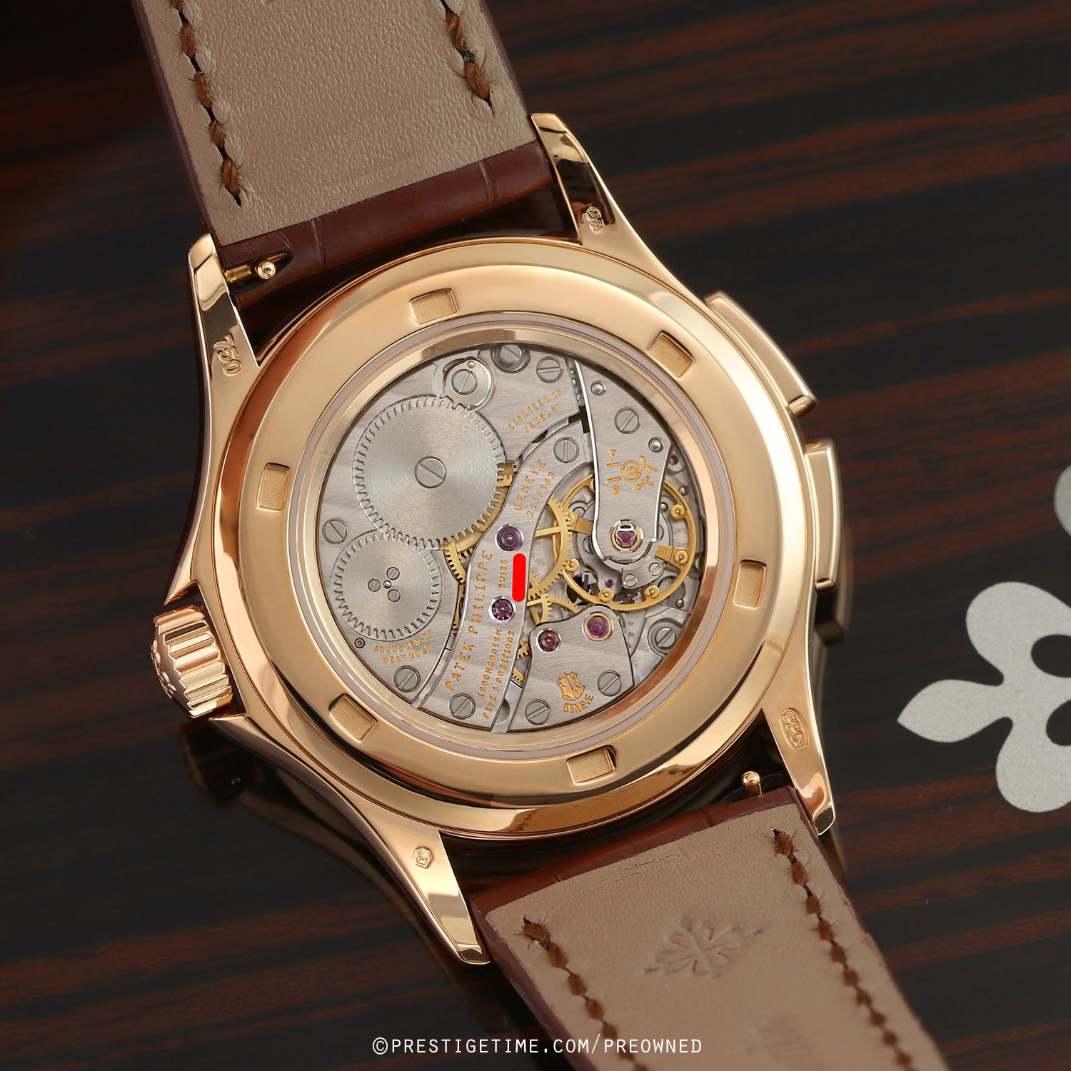 Movement: Powered by a Patek Philippe manual winding caliber 215 PS FUS 24H, with a Gyromax® balance. The movement is composed of 178 parts, beats at 28,800 vph (4Hz), contains 18 jewels, has a power reserve of 44 hours. The Patek Philippe caliber 215PS bears the prestigious
