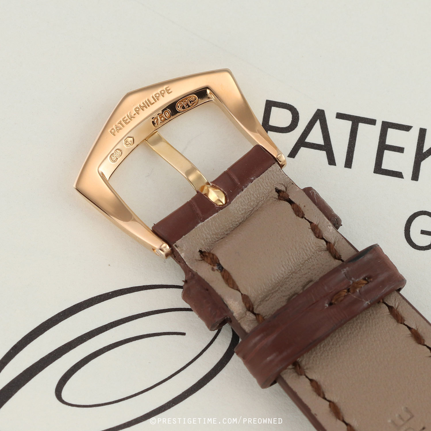 Strap: Fitted on a new Patek Philippe brown alligator leather strap with a polished 18kt rose gold tang buckle. The strap is brand new, crisp & unworn with its full wear lifespan remaining.