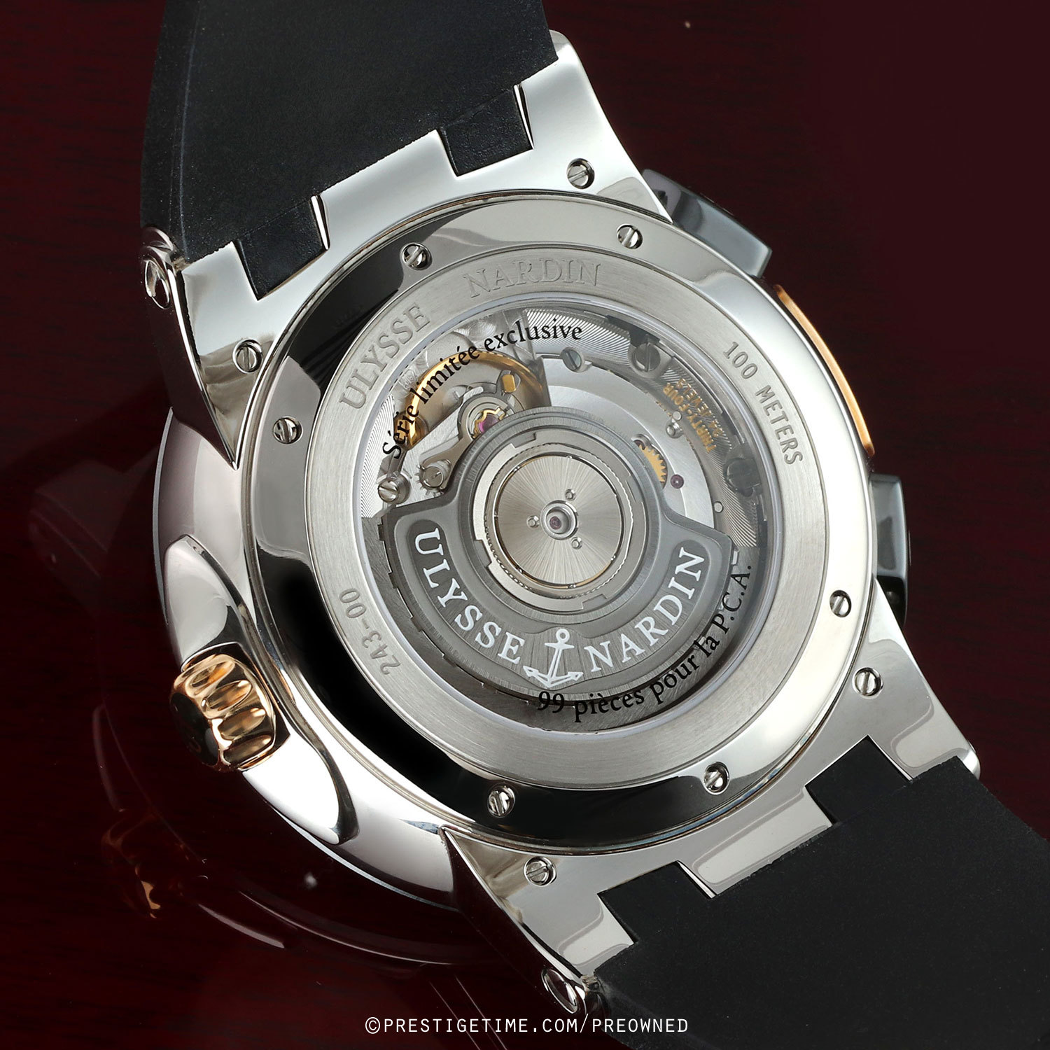 Movement: Powered by a Ulysse Nardin caliber UN-24 (base ETA 2892-a2), beats at 28,800 vph, contains 34 jewels & has a power reserve of +/- 42 hours.